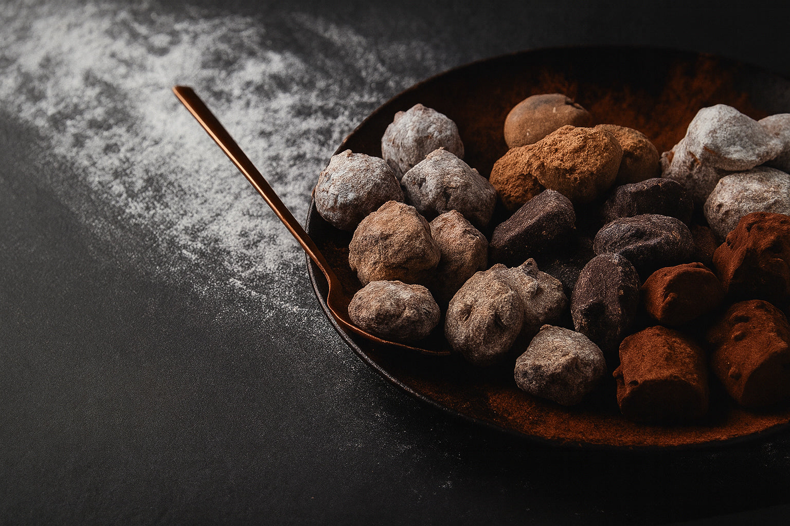 Naast ons heerlijke banket hebben we ook onze eigen chocolade: bonbons, truffels en andere lekkernijen – allemaal vers uit onze chocolaterie.